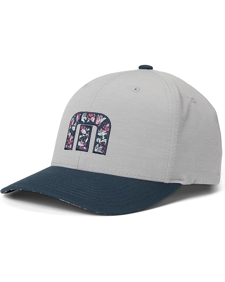 - The TravisMathew® Flourish Hat embodies versatile style with attention to detail and sophisticated simplicity. The hat features a five-panel design with a brand logo patch, a slightly curved brim, air holes for ventilation, and a snapback closure for easy adjustability.